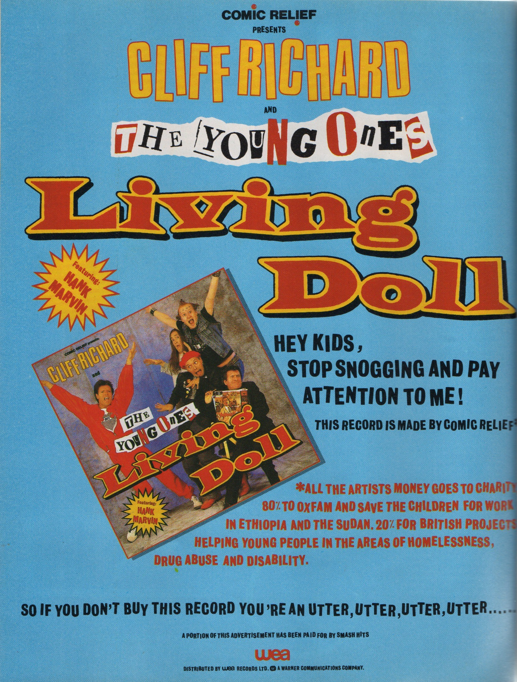 The Young Ones ‘Living Doll’ was released on 8th March 1986 and I wrote to the address on the back of the 12 inch at 21 D’Arblay Street, London W1 as it said ‘for further information from Comic Relief’.