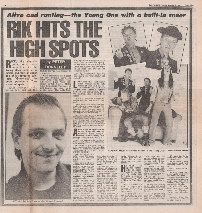 RICK, the slightly potty, very spotty nutter from TV’s The Young Ones, picks at a pimple and rants on about one of his favourite subjects. “Grown- up’s”, he pouts petulantly, “are scared of spots.