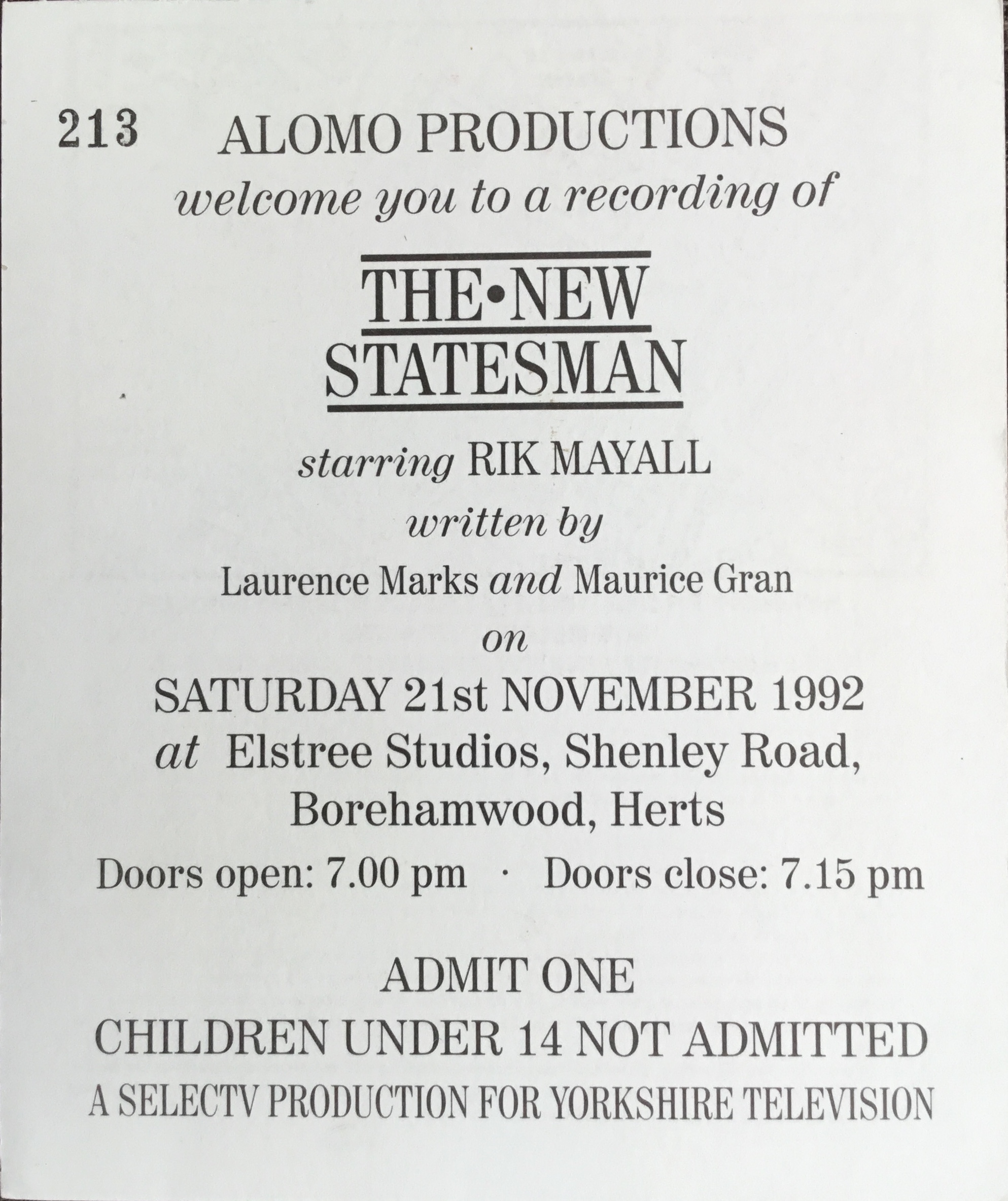 The New Statesman TV Ticket.