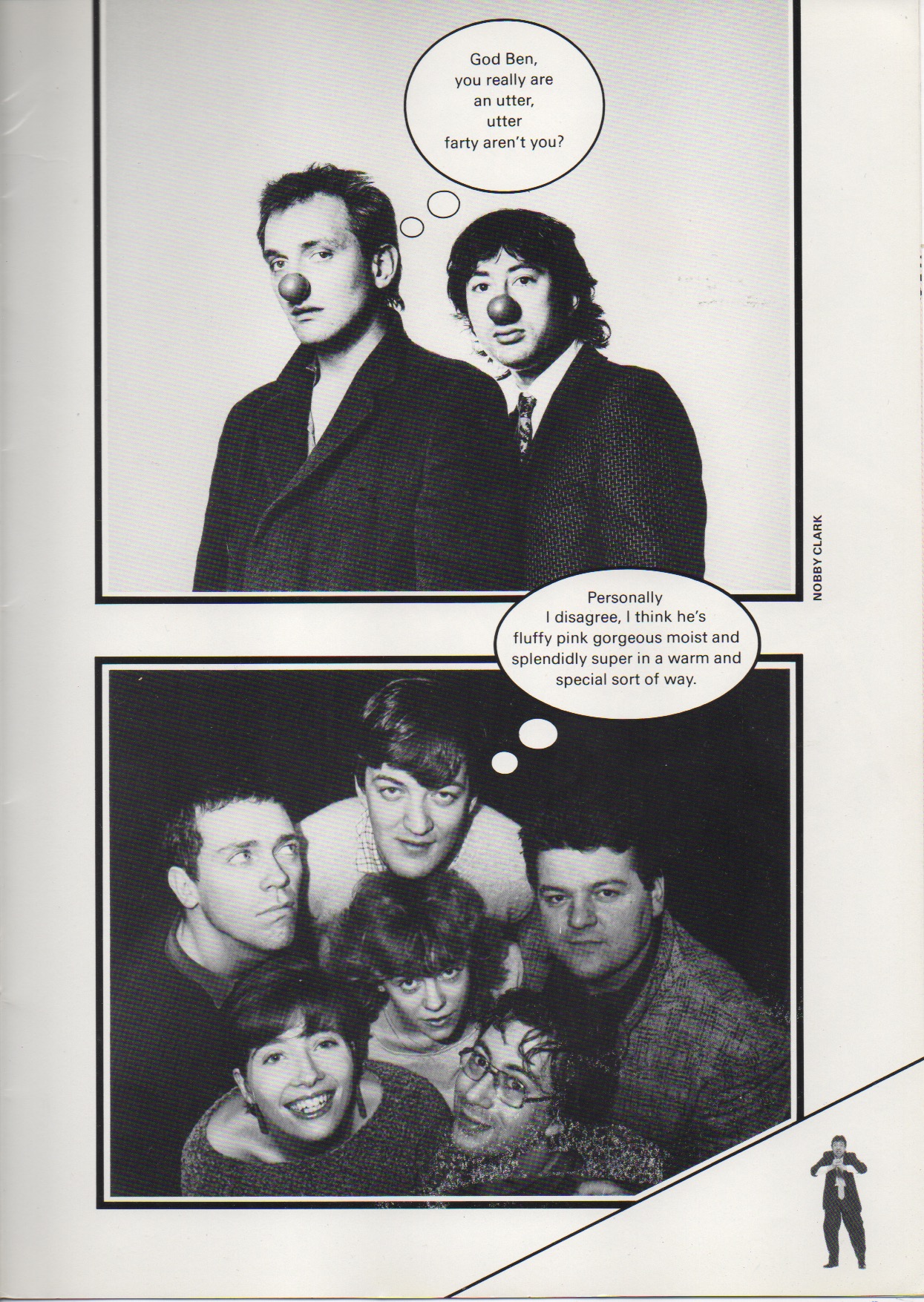 I finally got to see Ben live in 1993, at Southampton Mayflower. It was only a few weeks before I went to see the Bottom live shows. Ben was a captivating performer that evening and truly deserved his long standing title as a Motormouth. His stand up material just pours out of him. Just like Rik, he too had bags of energy. Rik and Ben toured together quite a bit in the early to mid 80’s – how I wished I had been old enough to see any of those shows, I bet they were electric.