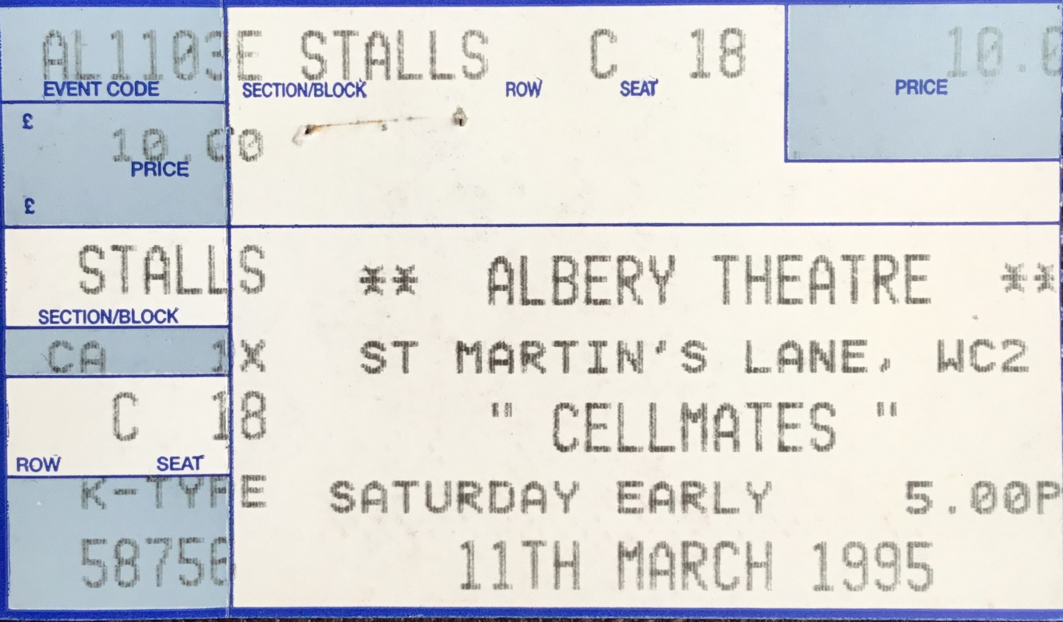 I was studying Theatre Design and we were encouraged to see as much theatre as possible. Cell Mates was being publicised, I had seen Rik in a few interviews and he was in it with Stephen Fry, great I thought, I’ll have to see this. My mum, always keen to go to the theatre was happy to see it too. We hadn’t yet bought our tickets, when on the TV the news broke, it was announced that Stephen Fry had walked out and had gone missing. It was big news and in the papers for a number of days as the story unfolded.
