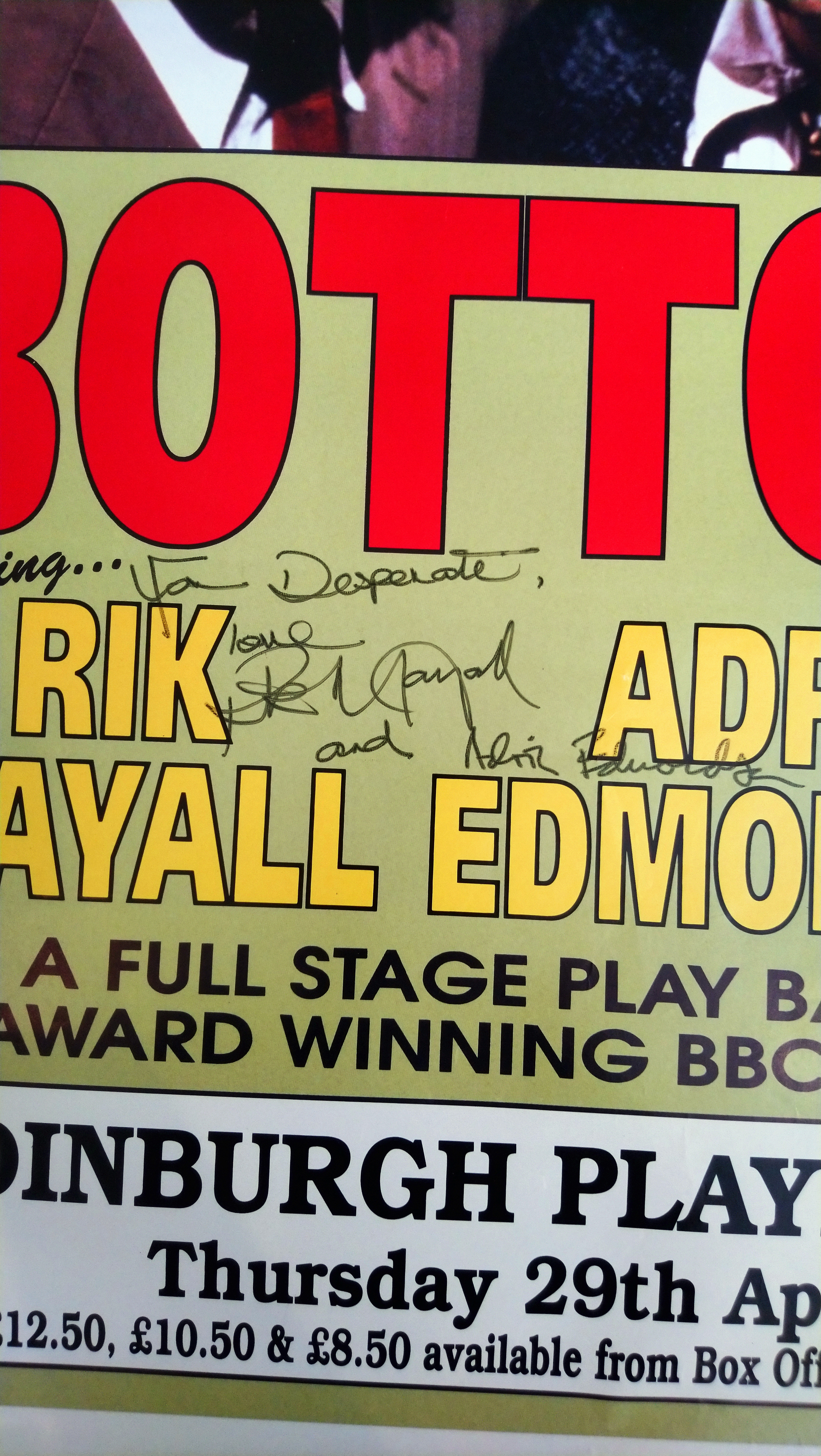 Signed Tour Poster from Darren Sheppard’s Collection. Read how Darren became a fan here: ‘A Bottom fan who is as old as the programme itself’